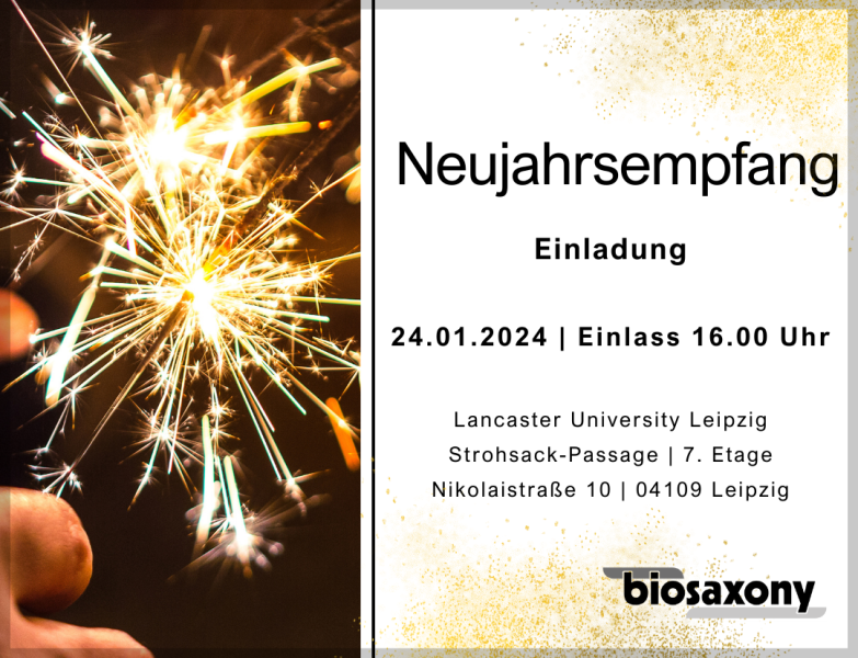 We cordially invite our members and partners of biosaxony e.V. on Wednesday, 24 January 2024 from 16:00 to our New Year's Reception at the Lancaster University Leipzig .