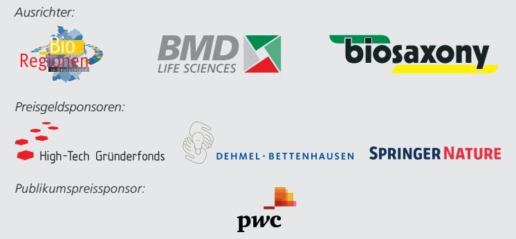 The Innovation Award of the German BioRegions 2023 was sponsored by long-standing partners, Springer-Verlag, the law firm Dehmel & Bettenhausen and the High-Tech Gründerfonds and jointly organised by BMD GmbH – Life Sciences Sachsen-Anhalt and biosaxony. The additional audience award, which is determined and presented during the award ceremony, was sponsored this year by the auditing company PricewaterhouseCoopers GmbH.