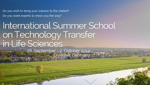 Die Medizinische Fakultät organisiert im Rahmen der Exzellenzinitiative der TU Dresden vom 28.09.-02.10.2014 zum zweiten Mal die International Summer School on Technology Transfer in Life Sciences.