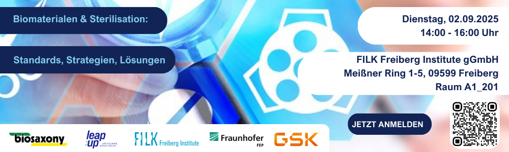 JETZT ANMELDEN: Biomaterialien & Sterilisation: Standards, Strategien, Lösungen | 02.09.2025 | 14:00 Uhr